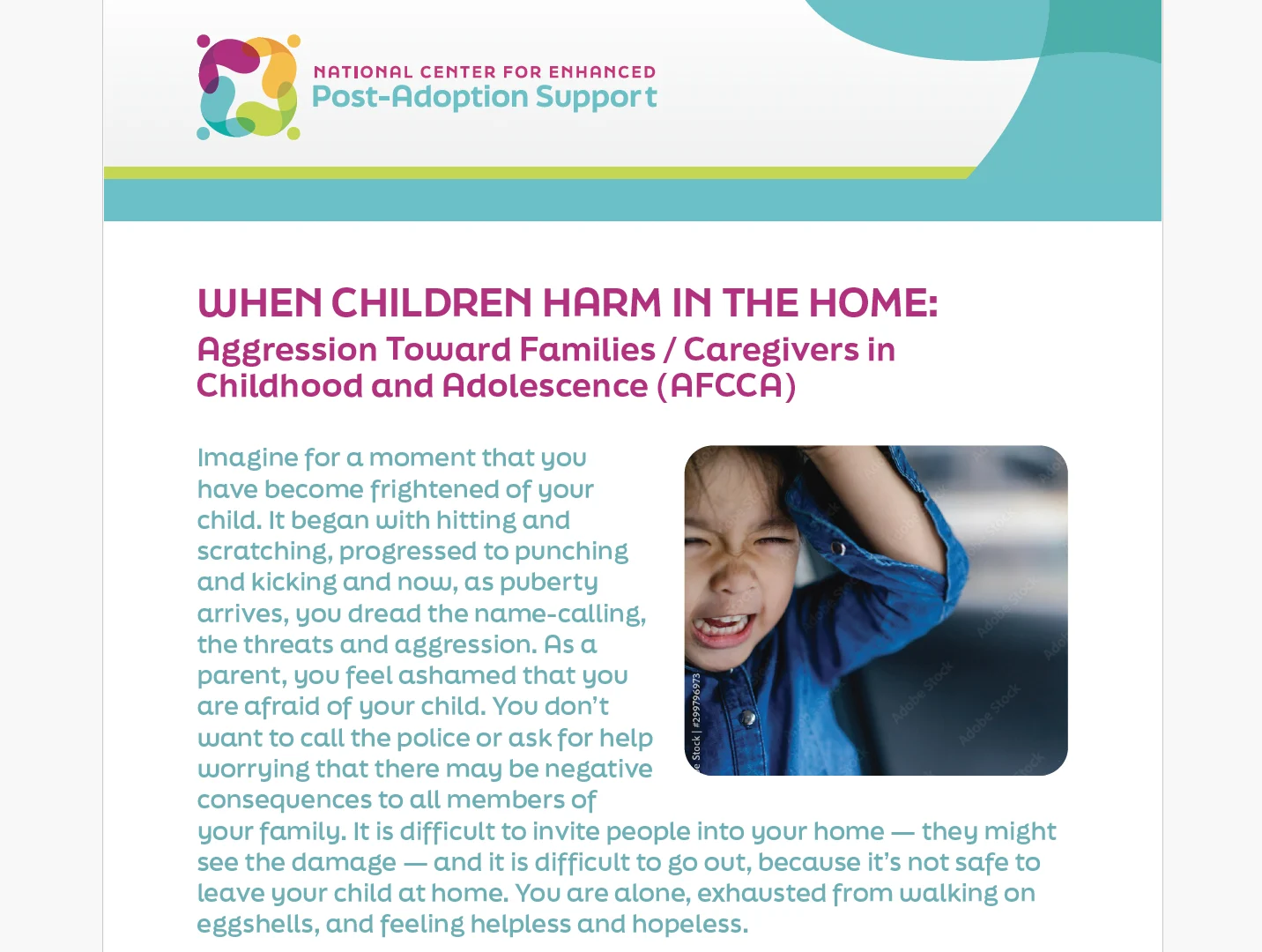 The National Center for Enhanced Post-Adoption Support has established a library consisting of hundreds of articles, guides, webinars, videos and other resources — carefully curated and reviewed — to help child welfare professionals enhance the support that they provide to families that have achieved permanency through adoption or guardianship.