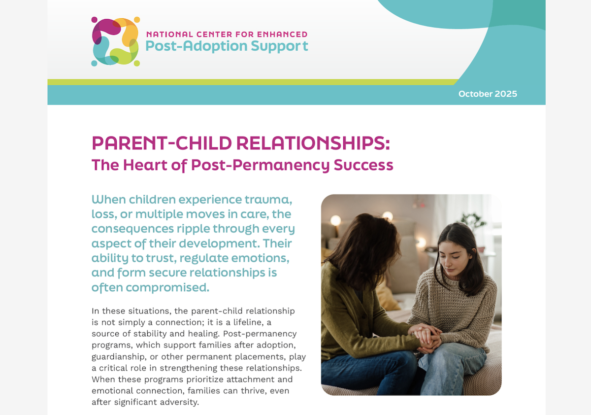 The National Center for Enhanced Post-Adoption Support has established a library consisting of hundreds of articles, guides, webinars, videos and other resources — carefully curated and reviewed — to help child welfare professionals enhance the support that they provide to families that have achieved permanency through adoption or guardianship.
